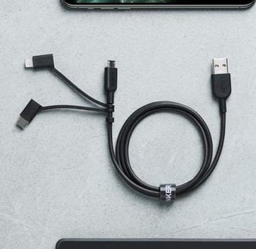 The Anker PowerLine II 3-in-1 Cable simplifies your life by bundling multiple connectors in a single 3-foot cord. There is no clutter, no fuss—just seamless charging for your device. Built with double-braided nylon, it withstands over 12,000 bends for lasting durability, ready for years of being tossed in backpacks.